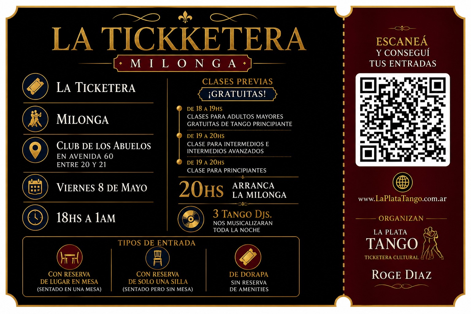 💃 LA TICKETERA MILONGA | Edición Especial 🕺 Milonga en La Plata | Clases gratis + 3 DJs de tango Si estás buscando una milonga en La Plata con clases, buena música y un ambiente cuidado, La Ticketera te invita a vivir una noche única de tango. El próximo viernes 8 de mayo, desde las […]